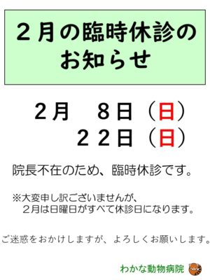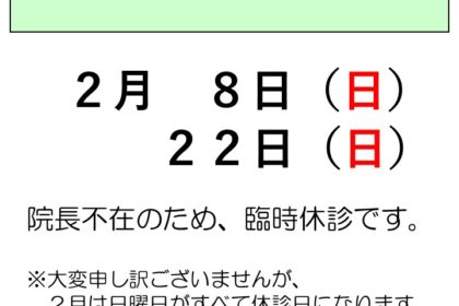 2月の臨時休診をお知らせします。